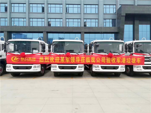 此次軍港采購的這些壓縮式垃圾車采用東風多利卡D9系列駕駛室底盤改裝,垃圾箱容積12立方米,康明斯180馬力發(fā)動機,后帶斗翻轉機構,帶PLC一鍵控制,操作方便。