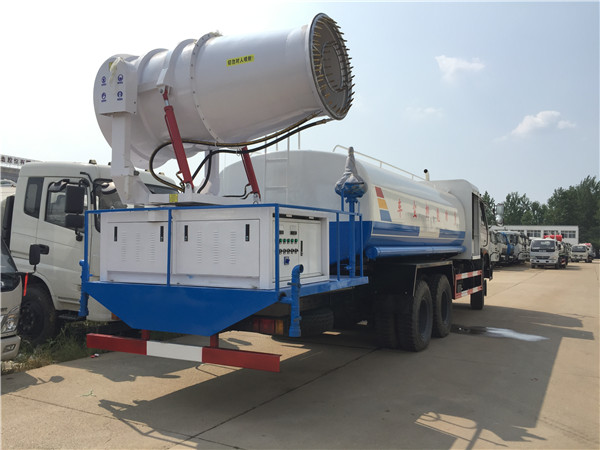 東風天龍霧炮灑水車,是根據東風天龍底盤進行改裝的灑水車, 再對灑水車尾部進行霧炮加裝,這種霧炮灑水車集灑水、噴藥于一體,由電腦全程控制,噴射距離長達100余米,對噴射面積大、距離長、樹木高的綠化是最大優勢,而且可以提高幾倍的效率。