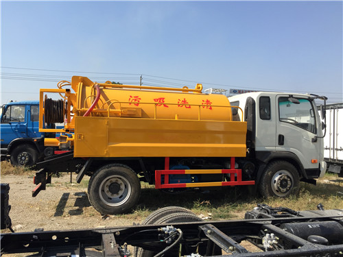 高壓清洗吸污車回油箱位于車架右中部,左通油氣分離器,右連四通閥。