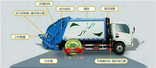 時風藍牌壓縮式垃圾車由密封式垃圾廂、液壓系統、操作系統組成。整車為全密封型,自行壓縮、自行傾倒、壓縮過程中的污水全部進入污水廂,較為徹底的解決了垃圾運輸過程中的二次污染的問題,避免了給人們帶來不便,關鍵部件采用進口部件,具有壓力大、密封性好、操作方便、安全等優點。 可選配后掛桶翻轉機構或垃圾斗翻轉機構。