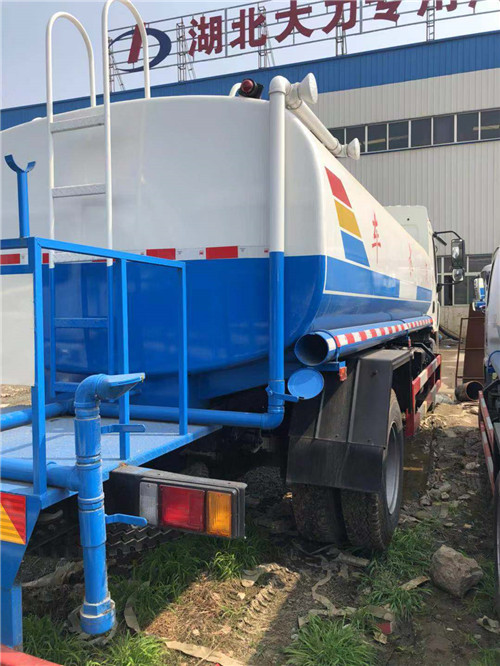 上裝配置:罐體有效容積12立方,采用5毫米厚武鋼碳板板自動焊接制作,配品牌大功率灑水泵,帶前噴后灑側噴,尾部平臺帶高位水炮,可自吸自排。前沖14米寬,水炮射程28米,自吸深度7米。