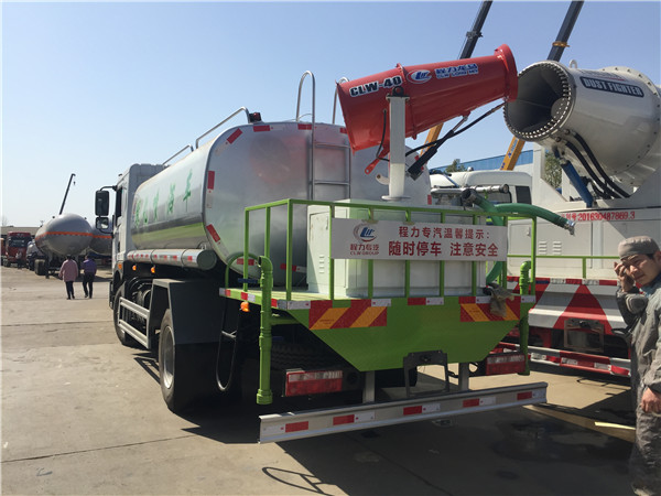 灑水車廠家提示對灑水車有特殊要求的用戶請提前告知,本廠可為用戶提供加裝各種附件的工作,如加裝藥盤、氣動閥、噴霧機設備、外接泵動力等。