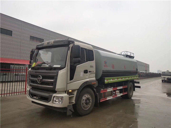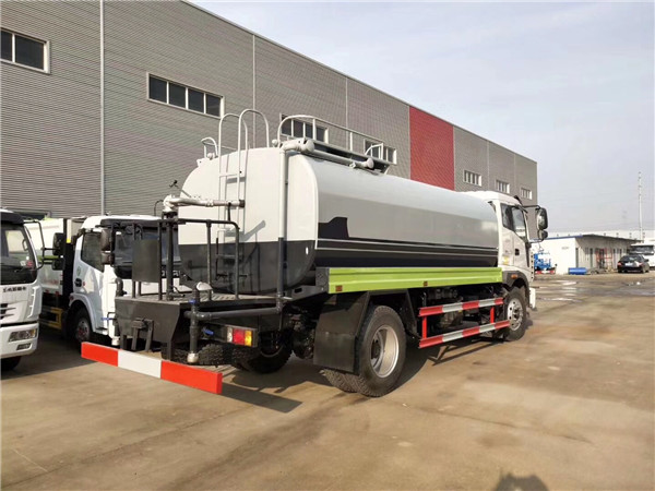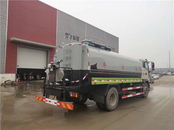原廠灑水車上裝配置:罐體容積為15立方灑水車,罐體鋼板為4mm碳鋼Q235材質,罐內隔板具有防波作用,以減輕汽車行駛時罐體液體沖擊,罐體及整車外形尺寸按照公告。帶大功率專用灑水泵,泵可自吸自排,整車前沖、后灑、側噴、帶65消防接口,后平臺帶綠化灑水炮,灑水炮可全方位旋轉,可連續(xù)調成直沖狀、大雨、小雨、毛毛雨;前封頭帶水位計,后平臺主管路帶1寸澆花接口,后爬梯。平臺后部帶小安全告知牌:“隨時停車,注意安全”,帶兩根水管及陰陽端。罐體顏色:上白/下藍,銀灰/銀藍,罐體兩側噴“灑水車、綠化噴灑車”字樣,貼反光標示。