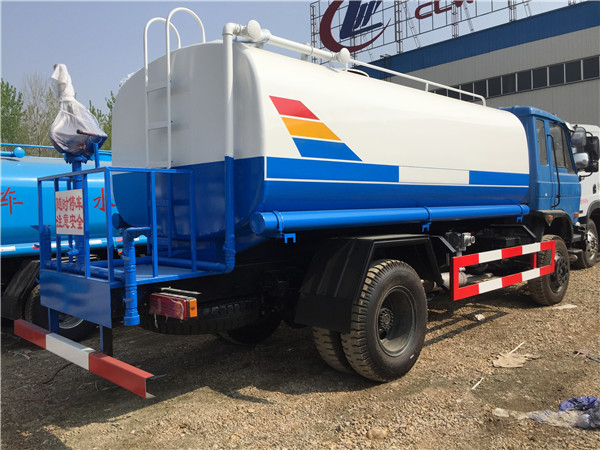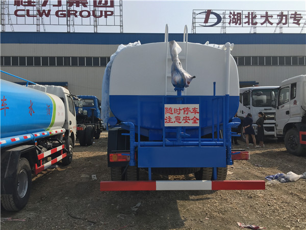 10噸東風灑水車底盤采用東風大多利卡(十堰產(chǎn)),3800mm軸距,帶動轉,7.5尼龍?zhí)ィ瑲鈩x,電子熄火。前沖后灑,后工作平臺帶高炮,右位花灑,側噴。罐體9.2噸,金龍泵,前沖后灑,后工作平臺帶高炮,右位花灑,側噴。