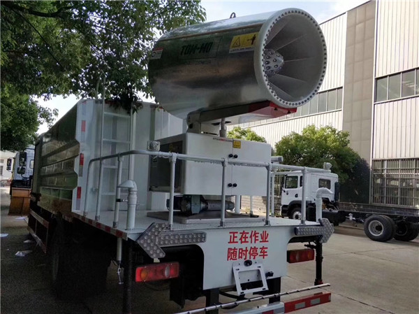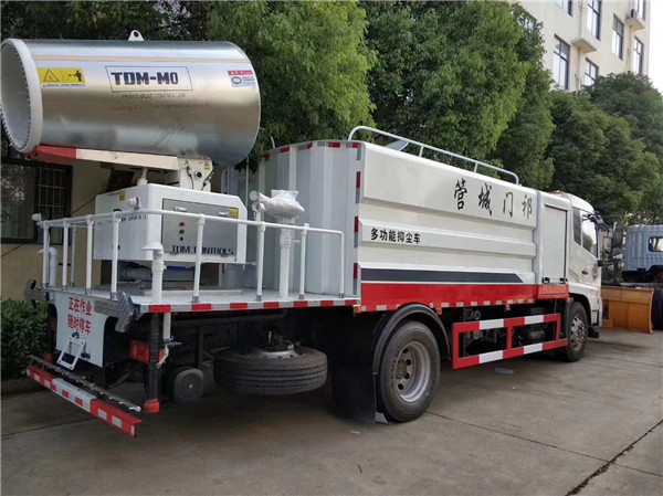 東風(fēng)天錦多功能抑塵車,方形折彎箱體,容積10.3方,配專用灑水泵(可自吸自排),前沖、后灑、側(cè)噴、平臺(tái)高炮(高炮射程水平可達(dá)28米),可選裝30-120米普通霧炮,也可配置大功率全液壓霧炮(車子自身發(fā)動(dòng)機(jī)通過夾心取力器帶動(dòng)大功率液壓泵,從而帶動(dòng)風(fēng)機(jī)轉(zhuǎn)動(dòng);電動(dòng)遙控控制風(fēng)機(jī)左右、上下轉(zhuǎn)動(dòng)和出水量)優(yōu)點(diǎn):功率大,噪音小,射程更遠(yuǎn),更加環(huán)保。