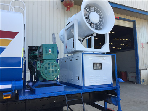 灑水車噴水器:灑水車前裝有鴨嘴形噴嘴或圓頭沖嘴,后面裝有圓柱形灑水噴嘴或蓮蓬頭噴嘴,后部有一工作平臺,裝配有水炮。后部還可裝8個噴嘴。灑水車的操作平臺比較簡單,就是用鋼板切割成一個平臺,然后把它焊接在灑水車的后部,裝上高炮及后噴頭,再用管道和底部連接起來,最后在平臺的周圍焊上圍欄。