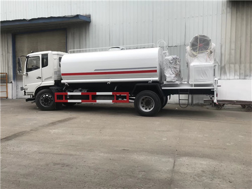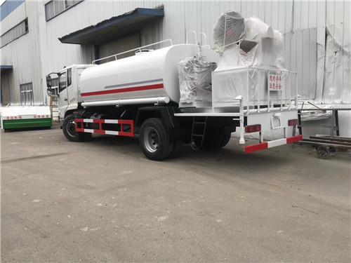 東風天錦灑水車標配前沖(噴)后灑,灑水寬度≥14米,帶側噴,罐體后帶工作平臺,平臺上安裝綠化灑水炮,灑水炮可全方位旋轉,射程≥28米,可連續調成直沖狀、大雨、小雨、毛毛雨,帶安全護欄,配備專用灑水泵,