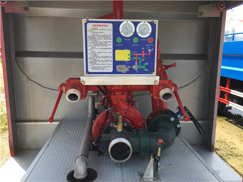 是我廠采用東風原裝二類底盤DFA11070DJ35D6基礎上改裝而成,東風輕發D28D10-40DA東風國五發動機,動力強勁,輸出功率75KW,102馬力,整車結構緊湊;專用部分由液罐、泵室、器材箱、動力輸出及傳動系統、管路系統、電氣系統等組成;罐體容積2-3噸(方);正規消防隊使用,PS10/20消防泵,最大射程45米;罐體采用4CM厚優質碳鋼Q235材質,防銹處理;廂體兩側帶卷簾門器材箱,可存放標配23套消防器材。