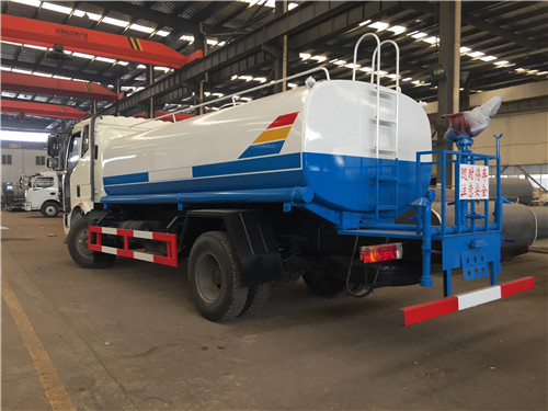 帶自吸泵,可將池塘的水直接吸入罐體內(nèi)也可直接從城市街道消防栓上連接注水,吸入罐體內(nèi)。罐前量管(觀察罐內(nèi)水位)、罐后爬梯、罐上罐口帶簡易護(hù)欄、罐側(cè)雙炮筒、6米長4寸鋼絲塑膠管兩根,罐體表面雙層油漆工藝,防銹、耐腐蝕,其余有廠家標(biāo)配。可選擇加裝加裝藥盤、氣動(dòng)控制閥、噴藥設(shè)備、罐內(nèi)防腐等。灑水車也可做噴藥車使用,可根椐用戶要求進(jìn)專業(yè)噴藥防腐處理,也可做企業(yè)單位運(yùn)水用,緊急時(shí)可做消防車使用。