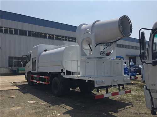 一臺“霧炮”灑水車可噴灑100多米。“霧炮”又叫環保除塵風送式噴霧機,安裝在車的后半部分。“霧炮”的原理是在液泵噴水后,利用風機將水噴灑出去,能噴灑120米遠、90米高。向天空噴灑水霧,達到抑制揚塵、綠化除塵等效果。