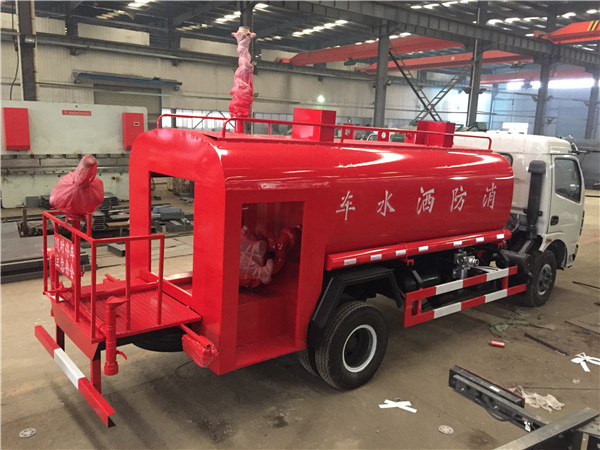 消防灑水車與灑水車相比,不但繼承了灑水車的全部功能,同時也彌補了灑水車射程小,壓力小等問題。消防灑水車除了裝備消防水泵及器材以外,還設有較大容量的貯水罐及水槍、水炮等。可將水和消防人員輸送至火場獨立進行撲救火災。它也可以從水源吸水直接進行撲救,或向其他消防車和滅火噴射裝置供水。因為沒有消防車器材箱,底盤高度及車輛寬度更適應山間、鄉(xiāng)鎮(zhèn)、鄉(xiāng)村的路況,是森林消防、鄉(xiāng)鎮(zhèn)和鄉(xiāng)村消防的有利消防工具。