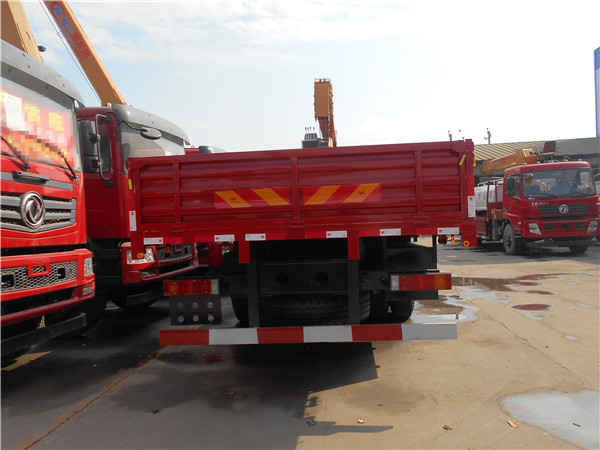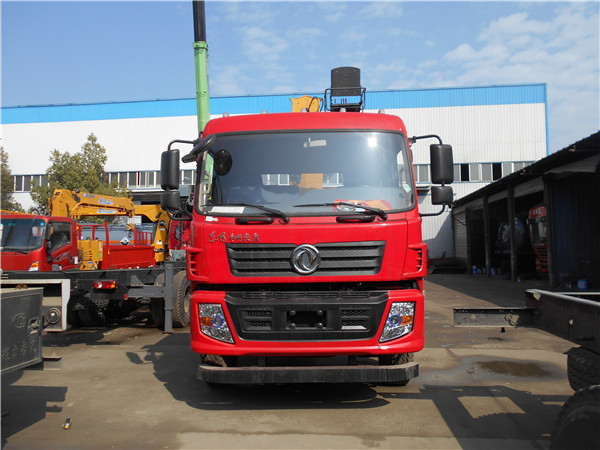 東風特商后八輪大隨車吊上裝配置:上裝可以選擇標準型或者重載型;標準型上裝橫梁采用12*12規格6mm厚方鋼,整根貫穿式設計,保證承載性能,貨箱平板8mm厚花紋板;重載型上裝橫梁采用14*14規格8mm厚方鋼,整根貫穿式設計,承載性能更好,貨箱平板10mm厚花紋板。爬梯采用加強型設計,采用三道筋雙簧加固處理,帶后支腿,隨車吊帶有斜支撐,平板可以伸縮,伸出3米,縮回2.5米,貨箱平板長度7.5米,是運輸20-30噸大型挖掘機、大型工程機械等最理想。