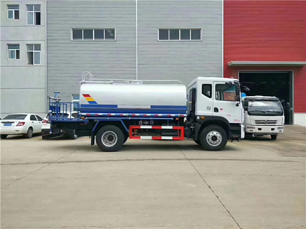 保定用戶購置15噸東風T5保溫運水車帶灑水車發(fā)車,該車夏季用戶綠化噴灑使用,而且駕駛室前置電動灑水炮,冬季用來運輸熱水,一車多功能。