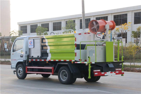 多功能抑塵車配置說明:東風多利卡5噸多功能抑塵車是一款綠化環衛多功能抑塵車,主要適合于城市、小區、工廠的小型綠化環衛用。前沖,后灑,帶側噴、帶后工作平臺、平臺上安裝綠化灑水高炮(高炮可360°旋轉,可連續調成直沖狀、大雨、小雨、毛毛雨),配備專用大功率灑水泵,帶消防接頭,帶自流閥,帶自吸功能。垂直吸程≥6米,灑水寬度≥14米,高炮射程≥28米。
