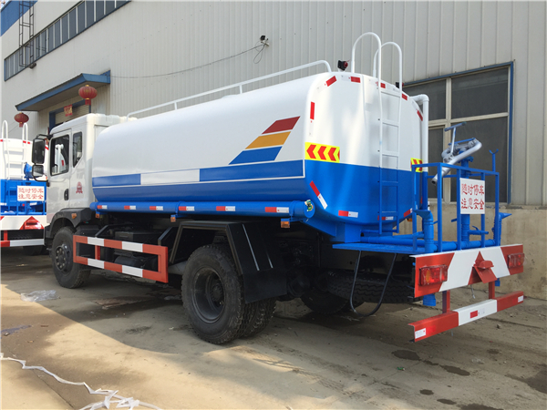 灑水車前裝有鴨形噴嘴或圓頭沖嘴,后面裝有圓柱開灑水噴嘴或蓮蓬頭噴嘴,后部有一工作平臺,裝配有水炮。后部還可裝8個噴嘴(選裝)噴水器一般用于沖洗街道,起除塵和降溫作用,其噴水器可以用調(diào)節(jié)噴嘴螺紋的方法改變噴水器的噴灑方向和角度,高射水炮可以用于城鄉(xiāng)園林綠化及應(yīng)急消防。蓮蓬嘴可以澆落路中間噴水器沖起的灰塵,起到清潔空氣的作用。