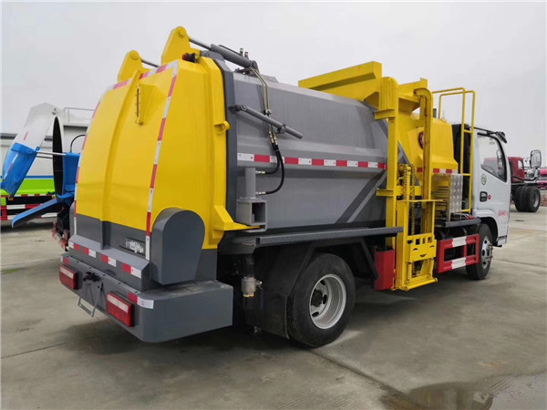 3、壓縮式餐廚垃圾車、對接式垃圾車和密封式垃圾車,主要是側(cè)重于垃圾的運(yùn)輸,這類垃圾車都具有的特點(diǎn)是裝載容積大,密封性好,便于收集和傾倒,最廣泛的運(yùn)用就是對垃圾回收站內(nèi)的垃圾進(jìn)行批量運(yùn)輸,將垃圾運(yùn)送至指定的垃圾處理地點(diǎn)。