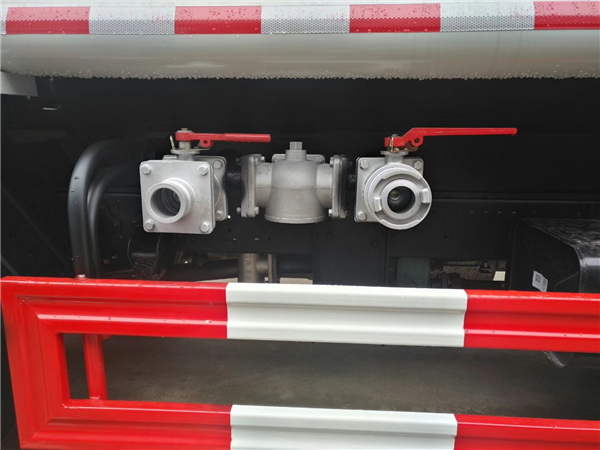 灑水車主要由汽車底盤、水罐、取力器、灑水泵、管網系統、后工作平臺等組成,其中,灑水車后工作平臺上主要安裝有綠化灑水高壓炮,側噴,后灑等噴灑裝置,工作平臺主要由3mm防滑板制作,還有方便上下平臺的用鋼筋與角鐵焊接的簡易踏步,和保證灑水車工作人員在操作灑水炮過程中的人身安全的防護欄,防護欄上一般設有警示標語,上面噴涂“隨時停車,注意安全”等字樣,提醒后車注意減速或避讓,與工作平臺后部相連的則是底盤防撞護欄。