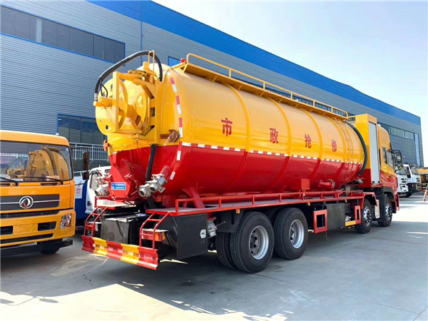 東風(fēng)天龍高壓清洗吸污兩用車∶該車在高度真空狀態(tài)下進(jìn)行吸泥、污水吸入作業(yè)。該車是由汽車底盤、取力器、傳動軸、真空吸污泵、壓力罐體、液壓部分、系統(tǒng)、真空壓力表、視糞窗、吸收裝置等組成。隨車合理搭配置國產(chǎn)、進(jìn)口優(yōu)質(zhì)的柱塞高壓泵,通過高壓水流產(chǎn)生的強(qiáng)大壓力沖開被堵塞的管道。主要組成部分為罐體、高壓泵、液壓系統(tǒng)等。高壓清洗吸污兩用車適用于大、中、小城鎮(zhèn)換位、市政、農(nóng)業(yè)、化工、廠礦企業(yè)、物業(yè)小區(qū)等部門的清洗疏通下水道和各種管道的沉積物,同時可進(jìn)行下水道中污泥清撈、裝運、傾斜工作同時具有運水、排水應(yīng)急消防等功能。