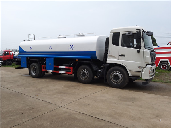 灑水車貯水箱設有排污管,該管的進口為水箱的最低點。經過一段時間的使用,應定期打開排污管開關,將罐內積存的雜物排除,直到水變清為止。