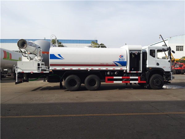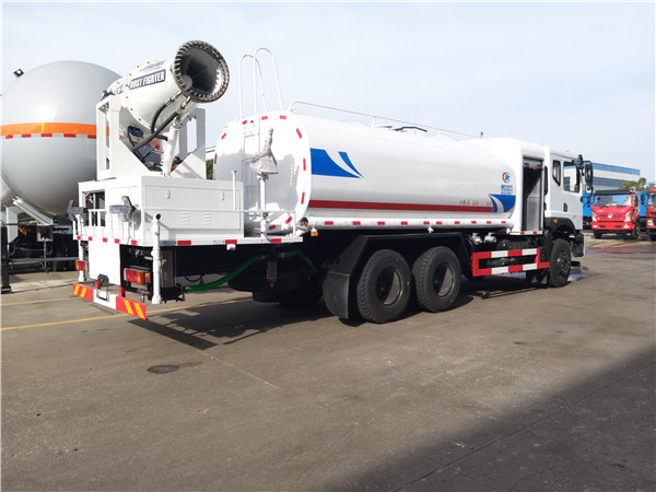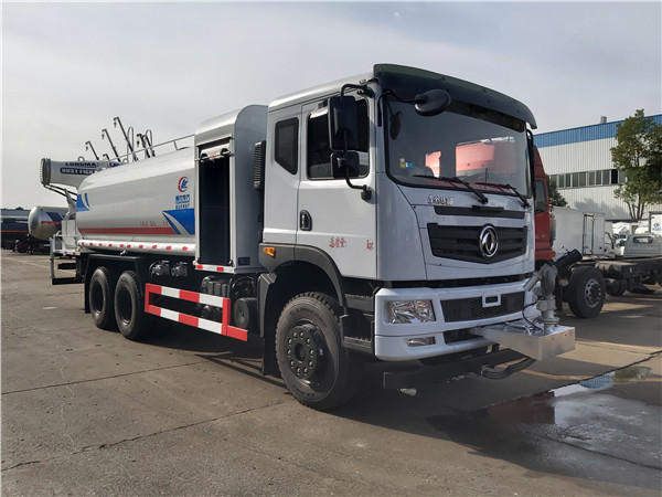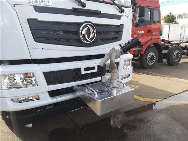 6、東風(fēng)灑水車采用氣動(dòng)裝置,可在駕駛室內(nèi)控制出水。具有前沖、后灑、側(cè)噴、后工作平臺(tái),高壓綠化水炮。