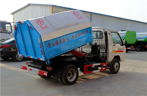 4、掛桶垃圾車主要用于:市政、大型廠礦部分運輸灰、砂、石、土等建筑材料等,帶液壓系統,舉升油制缸2支,自吊上放下,工作循環。采用優質鋼板,底部可加裝不銹鐵底板,保證自卸時的平滑性,可根據溫度加裝防冰凍設置,保障車輛的正常運行。