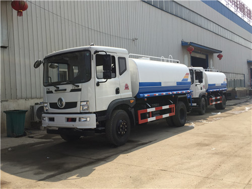 另外一種是不上牌的東風9噸環衛灑水車,底盤采用東風單排帶翻轉駕駛室,3950軸距,900尼龍胎,帶方向助力,斷氣剎,帶暖風不帶制冷。發動機可選:玉動140馬力(5檔帶副變速),也可選康明斯170馬力(6檔帶副變速)。