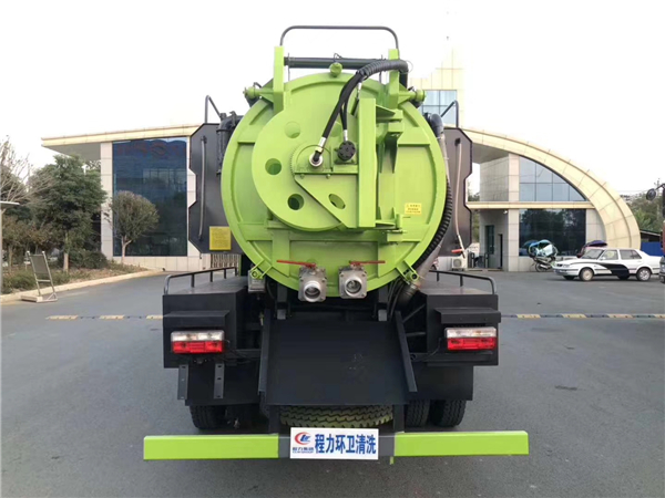 而東風多利卡國六8方清洗吸污車排放流動性較差的淤泥時,可以升舉罐體,打開后蓋,直接將罐體內淤泥傾倒干凈。整個過程迅速快捷。