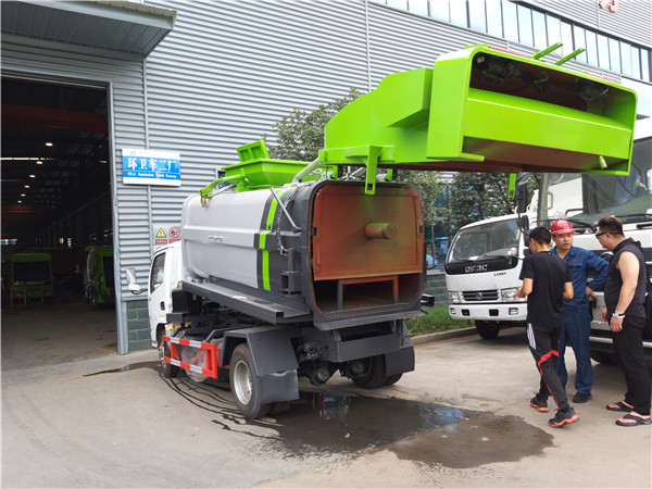 3.垃圾箱在制造上采用武鋼產優質鋼板,箱底板可加裝不銹鋼鋼板,保證介質自卸時的平滑性,同時箱底可根據地區的季節溫度情況加裝防冰凍設置,保障餐廚垃圾車的正常運行。