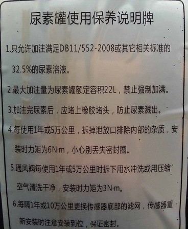 1.許加注足DB11/552-2008或其他相關標準的32.5%的尿素溶液。