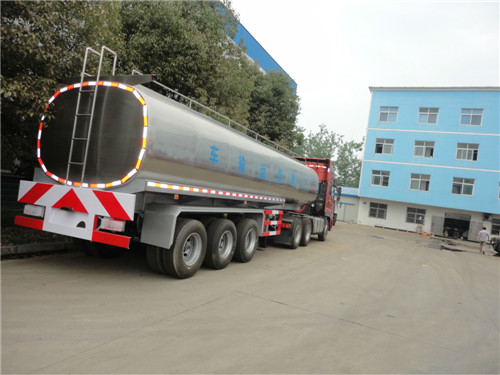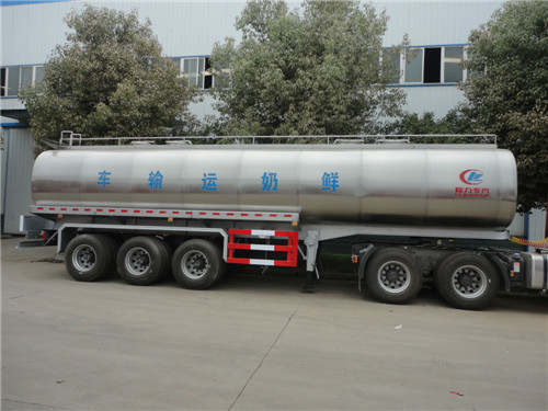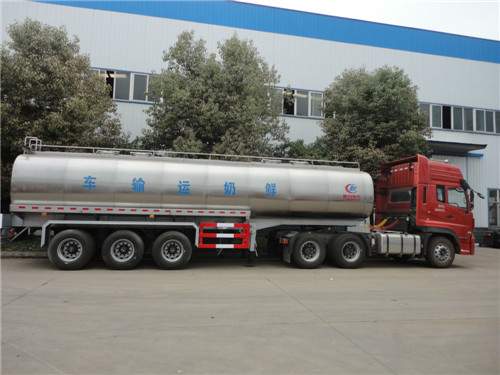 2、鮮奶運(yùn)輸車罐體容積45立方,分5倉(cāng),罐體外部需作保溫層防止鮮奶變質(zhì),罐體內(nèi)部用特種設(shè)備拋光,可充分保證鮮奶不掛壁,內(nèi)部要求光潔、無銳角,在每個(gè)奶艙內(nèi)加上cip(清洗裝置)。 鮮奶運(yùn)輸車罐體整體分三層,罐體內(nèi)膽,材質(zhì)為304/2B食品級(jí)不銹鋼,板厚度5mm,中間部分為聚氨酯發(fā)泡保溫層,厚度為80mm,人孔部分聚氨酯發(fā)泡為60mm厚。保溫效果在24小時(shí)±1℃。罐體最外部為1mm厚304不銹鋼鏡面板,。 內(nèi)膽部分有清洗裝置,清洗桿(或清洗球);清洗管(Φ38mm),旋轉(zhuǎn)清洗噴頭. 外部接上水源即可自動(dòng)清洗罐體,造 型美觀,結(jié)構(gòu)科學(xué),自重輕,強(qiáng)度好,罐口采用特制雙層保溫不銹鋼罐口5個(gè),5個(gè)2.5寸不銹鋼自流口卸料.